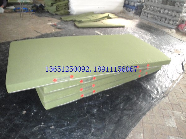 優質帆布表層,高壓海綿內芯; 不折疊;采用整塊23-38號密度高彈泡沫海綿; 外包防水帆布,防霉,深色,表面平整,無皺折,兩側有提手,便于移動。3*3綠色帆布,23#高彈泡沫海綿,價格:150元;