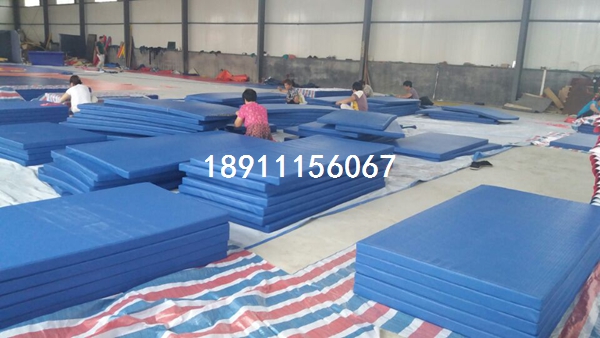 布料:西維綸革布、尺寸:200×100×5CM、壓縮海綿密度180號高密聚胺脂組成、色彩首選:紅、綠色、藍色。壓縮海綿密度不低于180#,當載荷落到墊子上時。具有防水性、防曬、防滑性、耐磨性、內置海綿一次成型,無接縫、無味環保,壓縮強度測試≥100kpa,吸水率測試≤0.6%,符合國家標準。表面平整無皺折,當載荷落至跳墊時,墊外層不會起皺折,里外層不會發生相對位移。