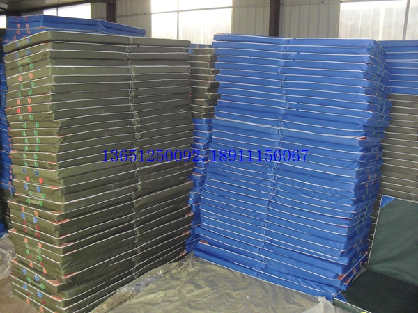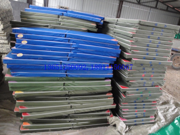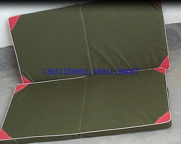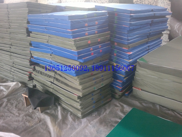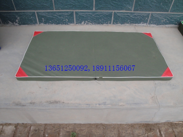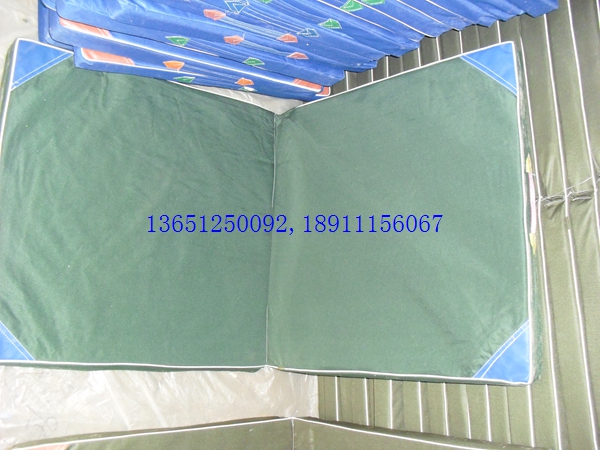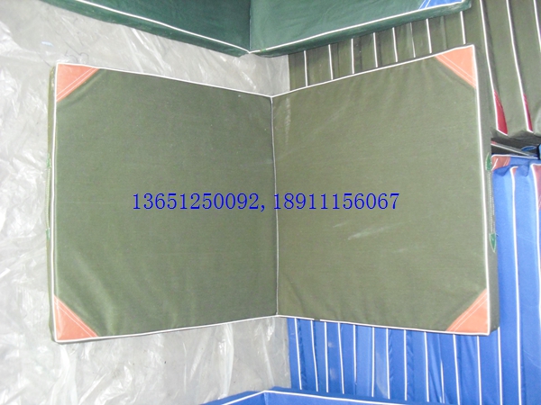 小體操墊120*60*5cm折疊,可折疊,采用整塊高密度壓縮(泡沫)海綿,外包防水帆布,防霉,深色,表面平整,無皺折,兩側有提手,便于移動。